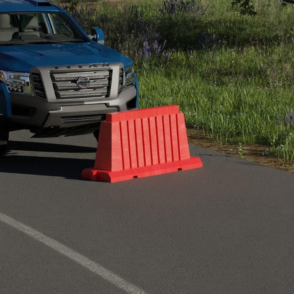 Главное преимущество - экономия средств при транспортировке за счет своей формы и возможности вкладывать барьеры друг в друга.