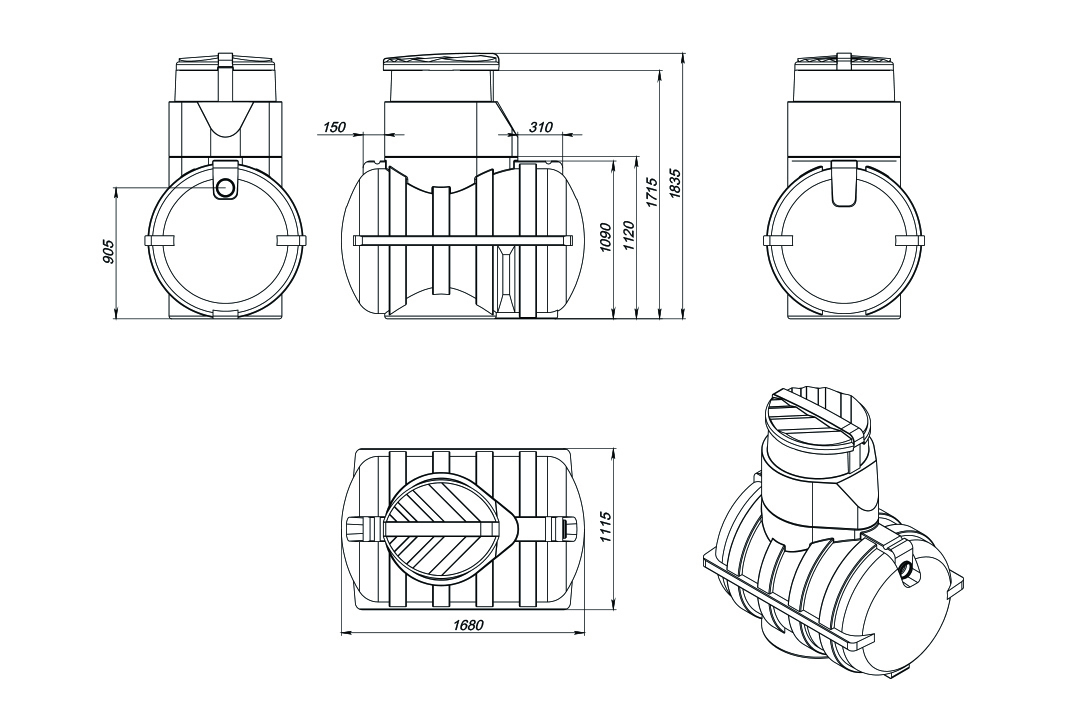 Емкость изготовлена на базе корпуса септика Rostok Дачный. Горловина емкостей U 1250 Oil оборудована